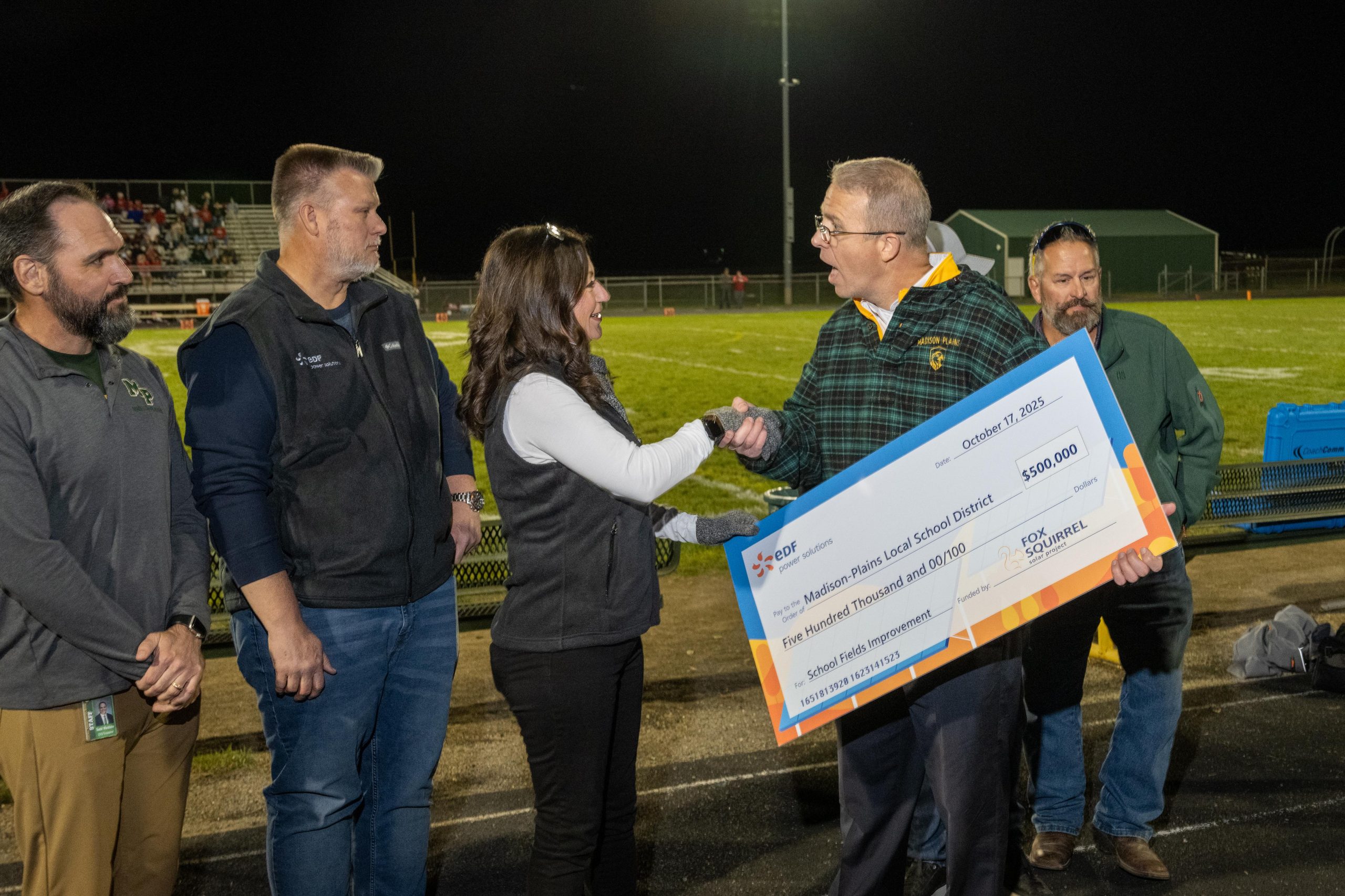 “The Madison-Plains Local School District is grateful for the remarkable donation of $500,000 towards enhancements of our outdoor athletic facilities from EDF power solutions. As a company, they believe in contributing positively to the communities in which they work, and this generous donation will help our School District to make improvements to athletic facilities to better meet the needs of our student-athletes. On behalf of the Madison-Plains Local School District, I would like to thank EDF power solutions for their generous donation.”
