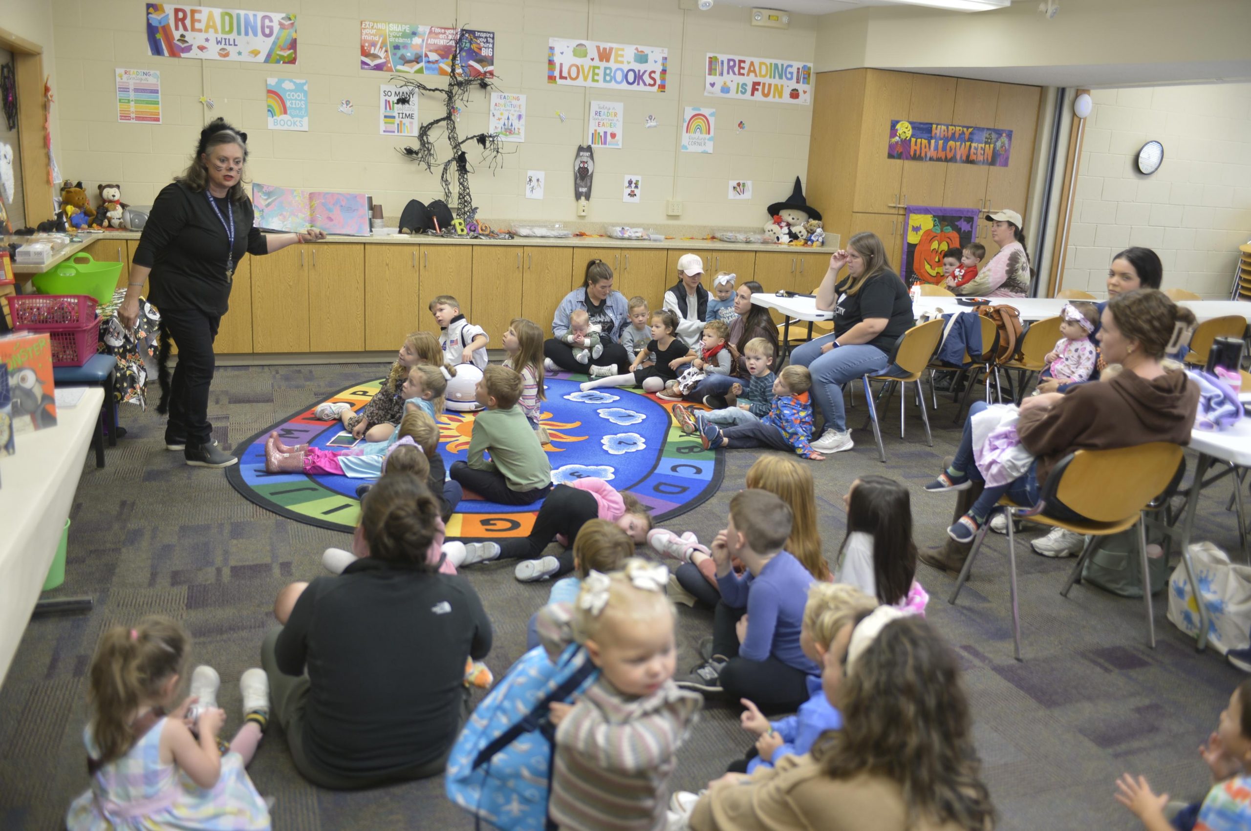 Hurt-Battelle Memorial Library in West Jefferson held Storytime on Friday October 17 with Monster Mash Bash.  Storytime leader Cassie Smith read the story “Monster Mash” by David Catrow to the children; it was a graveyard smash! After reading the story there was a parade around the room with musical instruments to the Monster Mash song.  The day concluded with craft projects for the children to create with supplies provided by the library.