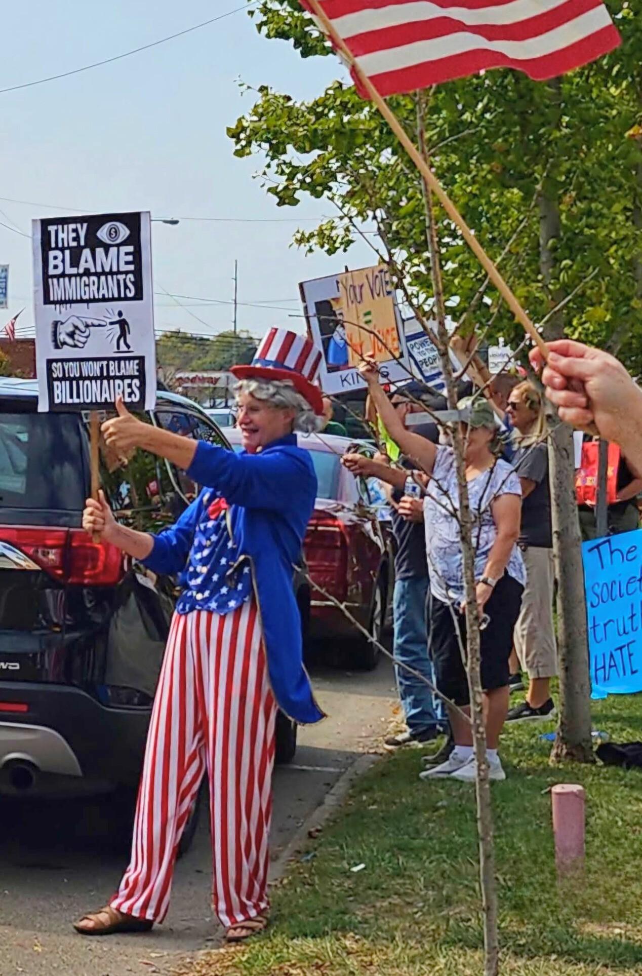 The crowd was diverse—families, young people, and older residents all gathered in a shared spirit. Demonstrating their rights. Parents brought their children, and even a protester dressed as Uncle Sam joined in. Protests highlighted the importance of the First Amendment, which safeguards the ability to gather and speak out—and, equally, the right for those stories to be told.