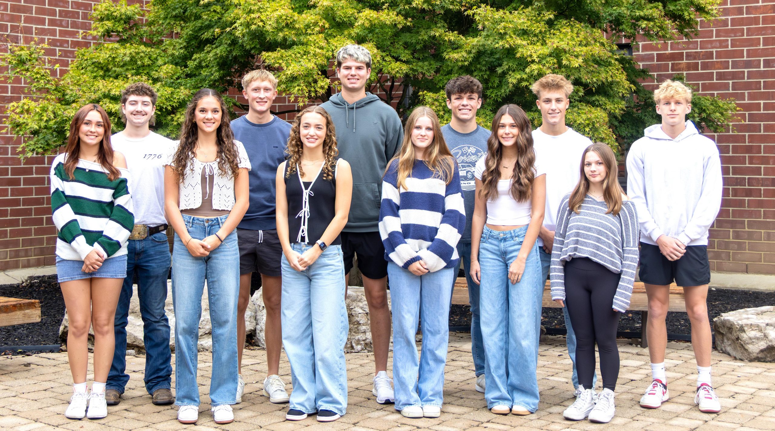 Senior Emiy Webb escorted by Myles Guthrie, Senior Calla Streit escorted by Mark Goode, Senior Emmerson Edwards escorted by Garrett Bauer, Sophomore Sydney Bauerle escorted by Grayson Adams, Junior Reese Fry escorted by Walker Martin, Freshman Lily Kramer escorted by Kaden Rapp